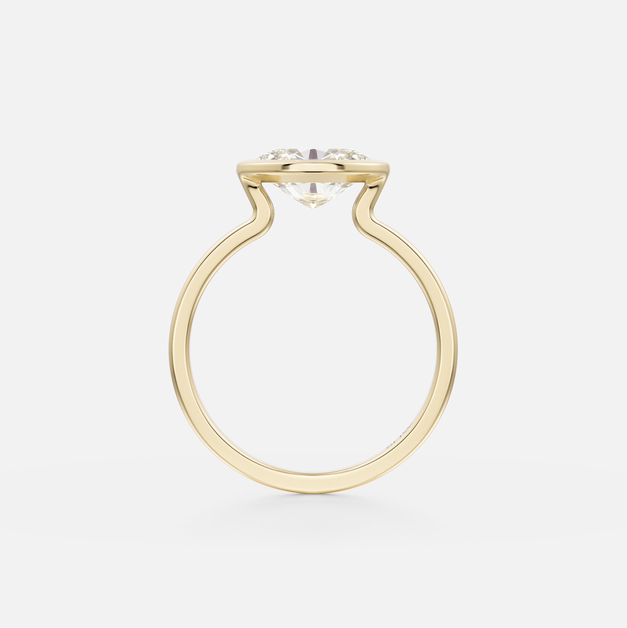 Our Mana Ring features a modern bezel setting which allows for a unique perspective of the bottom of any diamond or gemstone to be shown. The setting is formed by the rings band extending into a bezel that surrounds the top of the stone.